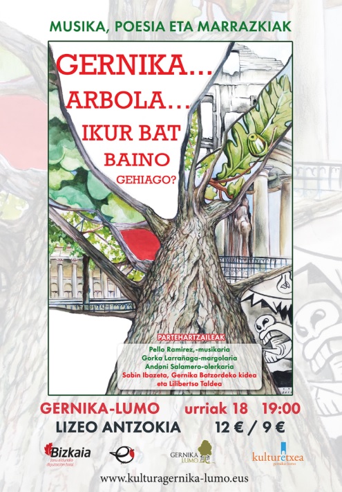 Nosotros, Pello Ramírez, chelista, Gorka Larrañaga, pintor, y Andoni Salamero, poeta, queremos hacer una lectura subjetiva del árbol emblemático desde el respeto, la ternura, en un ambiente de tolerancia y de serenidad.