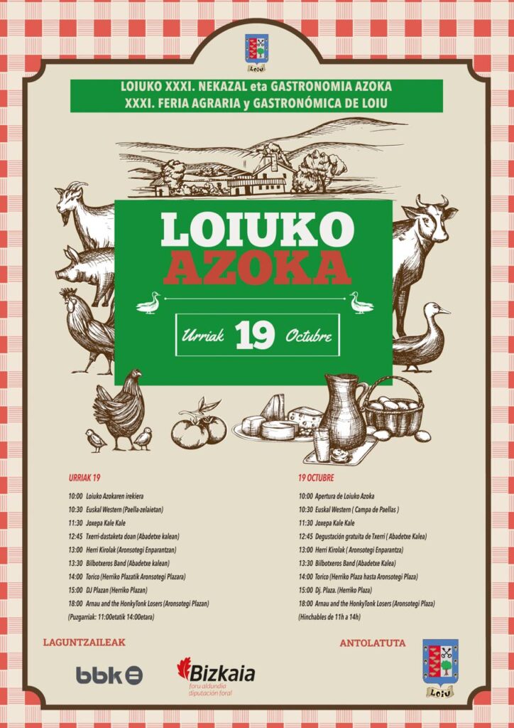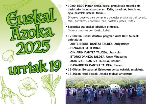 Euskal Azoka en Arrigorriaga este domingo, 19 de octubre, por la mañana. La mayor variedad de productos del caserío: hortalizas, miel, chocolate, pan, quesos… sidra y pintxos con Eusko Label. El ayuntamiento de Arrigorriaga te invita a disfrutar de la cultura, la gastronomía, la música y la danza vasca.