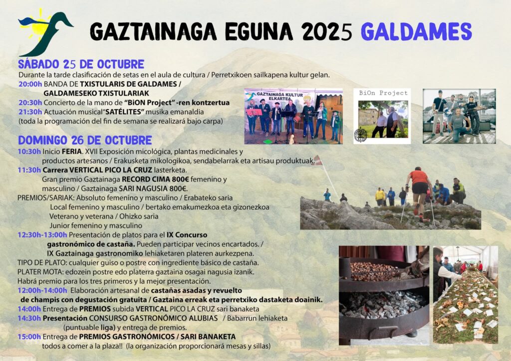 La asociación Gaztainaga Kultur Elkartea, en colaboración con el Ayuntamiento de Galdames y empresas y establecimientos de la localidad, llevará a cabo a lo largo del fin de semana del 25 y 26 de octubre un amplio programa de actividades culturales y deportivas en la plaza San Pedro con motivo de una nueva edición del Gaztainaga Eguna.