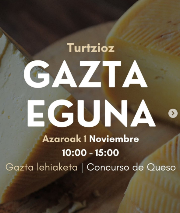 Un año más, el 1 de noviembre disfrutaremos de los mejores quesos de aquí y de otros lugares en una nueva edición de la tradicional feria del queso de Turtzioz. En la plaza del ayuntamiento, en los jardines del palacio La puente y en la plaza de toros, además de los puestos dedicados al queso, habrá stands con otros productos agroalimentarios y artículos de artesanía.