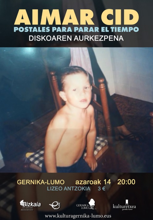 Aimar Cid llega este viernes al Lizeo Antzokia en la presentación del disco ‘Postales para parar el tiempo’. El capricho musical le ha pillado y el rockero quiere probar con una mochila pequeña a sus espaldas y caminar una senda personal con sus canciones más íntimas, sin dependencia, con independencia, en singular. Canciones de corte rockero que tienen un rasgo inequívoco en su voz mediorasgada. Quiere mantener lo suyo, en esta nueva andadura artística con el nombre de AIMAR.