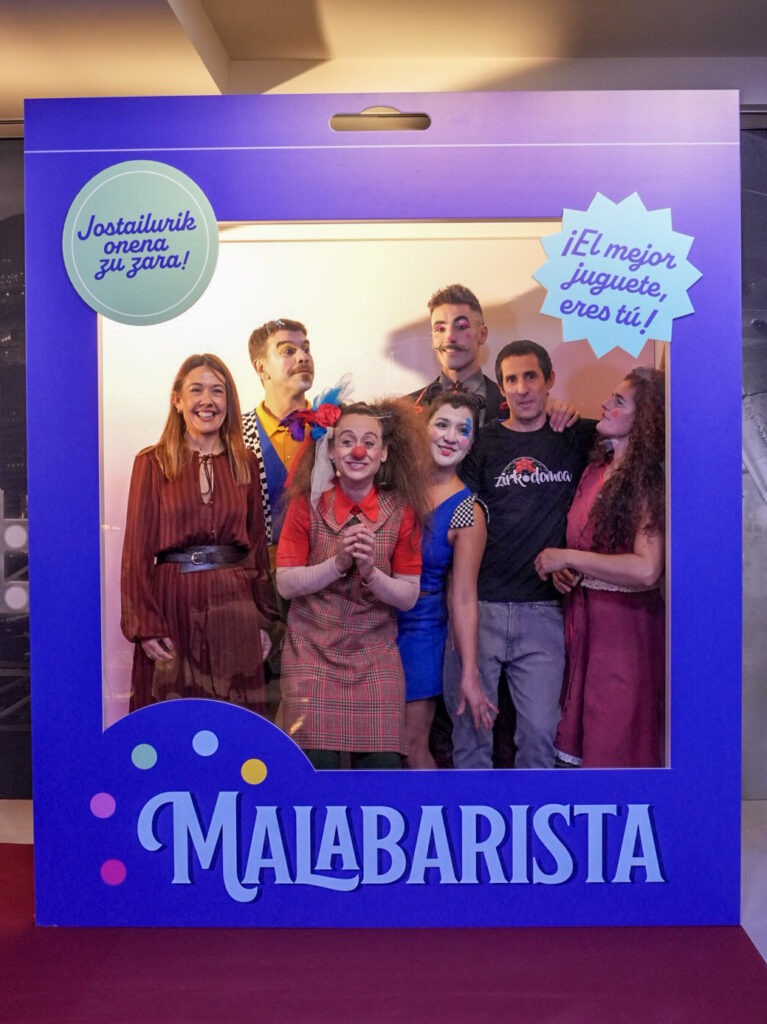 Malabares, acrobacias, clown, magia, funambulismo…, son algunas de las disciplinas que “El circo de los juguetes” – “Jostailuen zirkua” ofrecerá en un ambiente de cercanía gracias a la especial reconfiguración de la Sala BBK. Y es que, para la ocasión, el patio de butacas se ha convertido en un gran espacio diáfano en el que se han instalado gradas en semicírculo en torno a una pista central, sobre la que bombillas y banderines generarán la ilusión de estar bajo una carpa. “Queremos que el público sienta que entra en un verdadero circo”, ha prometido Mikel Pikatza, director del montaje. “En uno, además, muy especial: donde puedes conectar con la emoción circense y tener a los artistas a escasos metros.