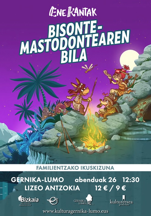 Bisonte-Mastodontearen bila es un teatro infantil en euskera basado en el libro escrito por Nerea Urbizu y que lleva el mismo nombre. En esto la música tiene mucha importancia. Una espectacular escenografía que refleja la Sierra de Aralar en la Prehistoria se combina con el soporte audiovisual.