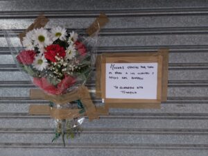 El bar Fernan de la calle Trauko ha amanecido este domingo engalanado con flores y velas para honrar la memoria de su regente, Luis M, asesinando este viernes en su domicilio, presuntamente, por su pareja tal y como reconoció a la policía.