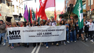 En un comunicado, las centrales sindicales han recordado que se trata de una huelga general «convocada en toda Euskal Herria» para exigir un salario mínimo de, al menos, 1.500 euros y bajo el lema ‘Gutxieneko soldata hemen erabaki.1500 euro.Soldatak hobetu aberastasuna banatzeko’.