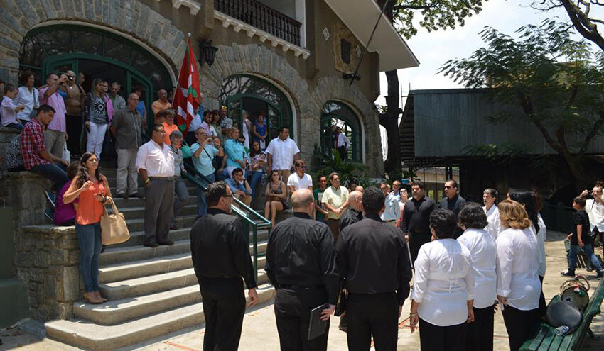 Tras el acto religioso, la tradición dicta salir al exterior del recinto. Frente a la fachada del caserío que conforma la Eusko Etxea, se baila un aurresku de honor. Durante este solemne momento, se procede a izar conjuntamente la bandera de Venezuela y la ikurriña, mientras los asistentes entonan los himnos de ambas naciones.