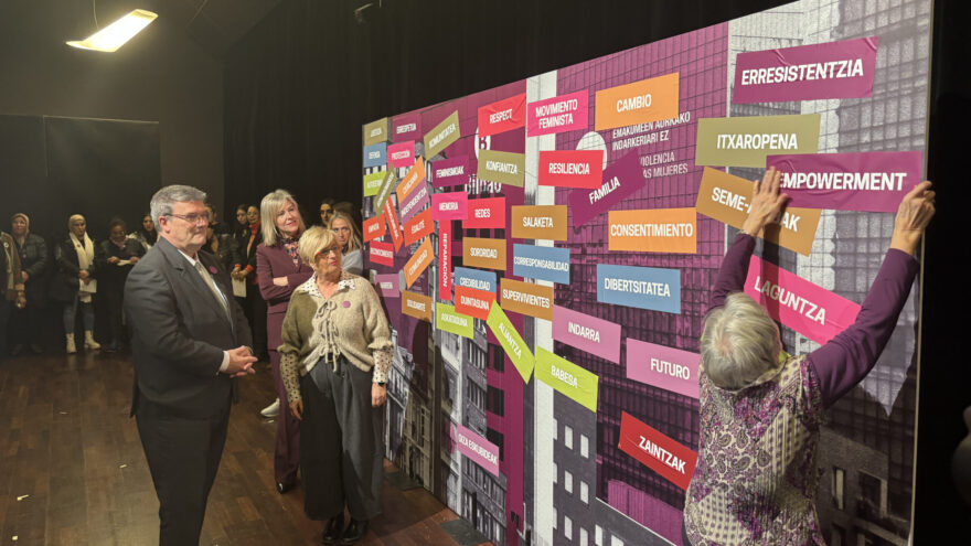 Bilbao ha conmemorado el Día Internacional para la Eliminación de la Violencia contra las Mujeres (25N) con un acto simbólico y participativo celebrado en el Teatro Campos Eliseos, que ha reunido a representantes institucionales, asociaciones feministas, colectivos sociales y culturales y personal del Tercer Sector. El encuentro, coordinado por la actriz Gurutze Beitia, ha contado con la participación del Alcalde Juan Mari Aburto, la Concejala de Igualdad Itziar Urtasun y la Presidenta de la Bizitu Elkartea, Inma Mata, así como de representantes de la Corporación Municipal.