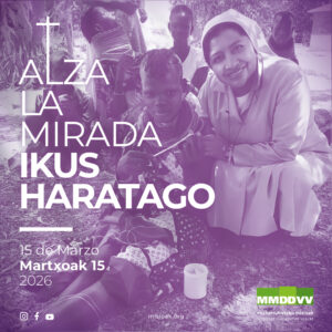 Con el lema «Alza la mirada/Ikus haratago» Misiones Diocesanas Vascas celebraba su jornada anual este pasado fin de semana. El lema de este año nos invita a levantar bien nuestra mirada para observar mejor lo que nos rodea y ser más conscientes de nuestro entorno. Dentro de las actividades organizadas en la campaña de este año, el miércoles 18 de marzo, a las 18:30 h., el salón de actos de la parroquia de El Carmen de Indautxu, acogerá una sesión de Cine Fórum dedicado al documental “Semillas de Kivu”, sobre la realidad de las mujeres en el este de la República Democrática del Congo y su lucha por la justicia, la dignidad y la esperanza, en medio del conflicto armado que afecta la región. Entrada libre. Campaña de Misiones Diocesanas Vascas: Karina Veliz y Ketty Vidal, «Voces del Sur».