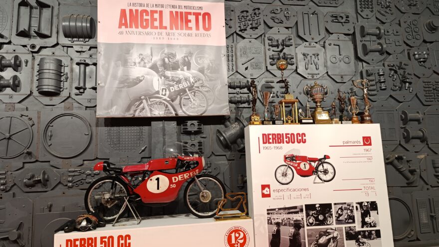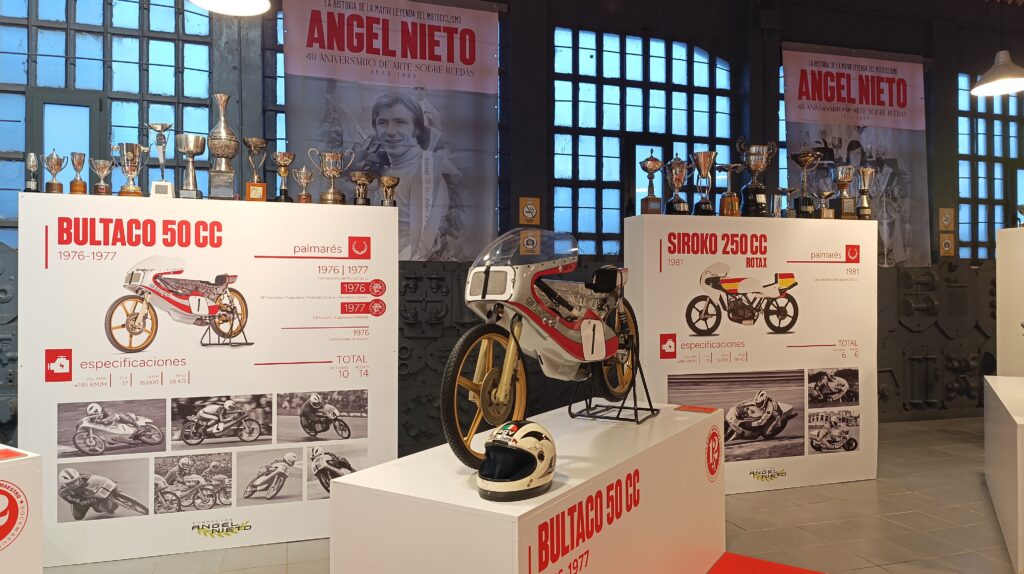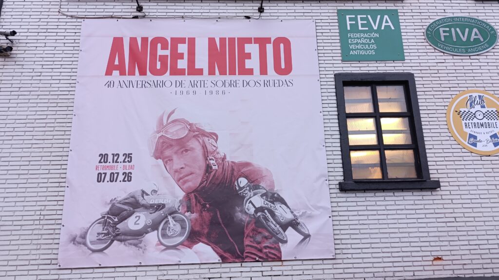 Retromobile ha abierto en Erandio (calle Tartanga 39) una exposición que reúne la memoria de Ángel Nieto con sus motos, cascos, monos y trofeos, a solo unos minutos del Metro. La muestra, impulsada por la Federación Vasca de Vehículos Clásicos y Deportivos, acerca al público una colección que durante años ha permanecido guardada y que ahora se puede visitar en Bizkaia.